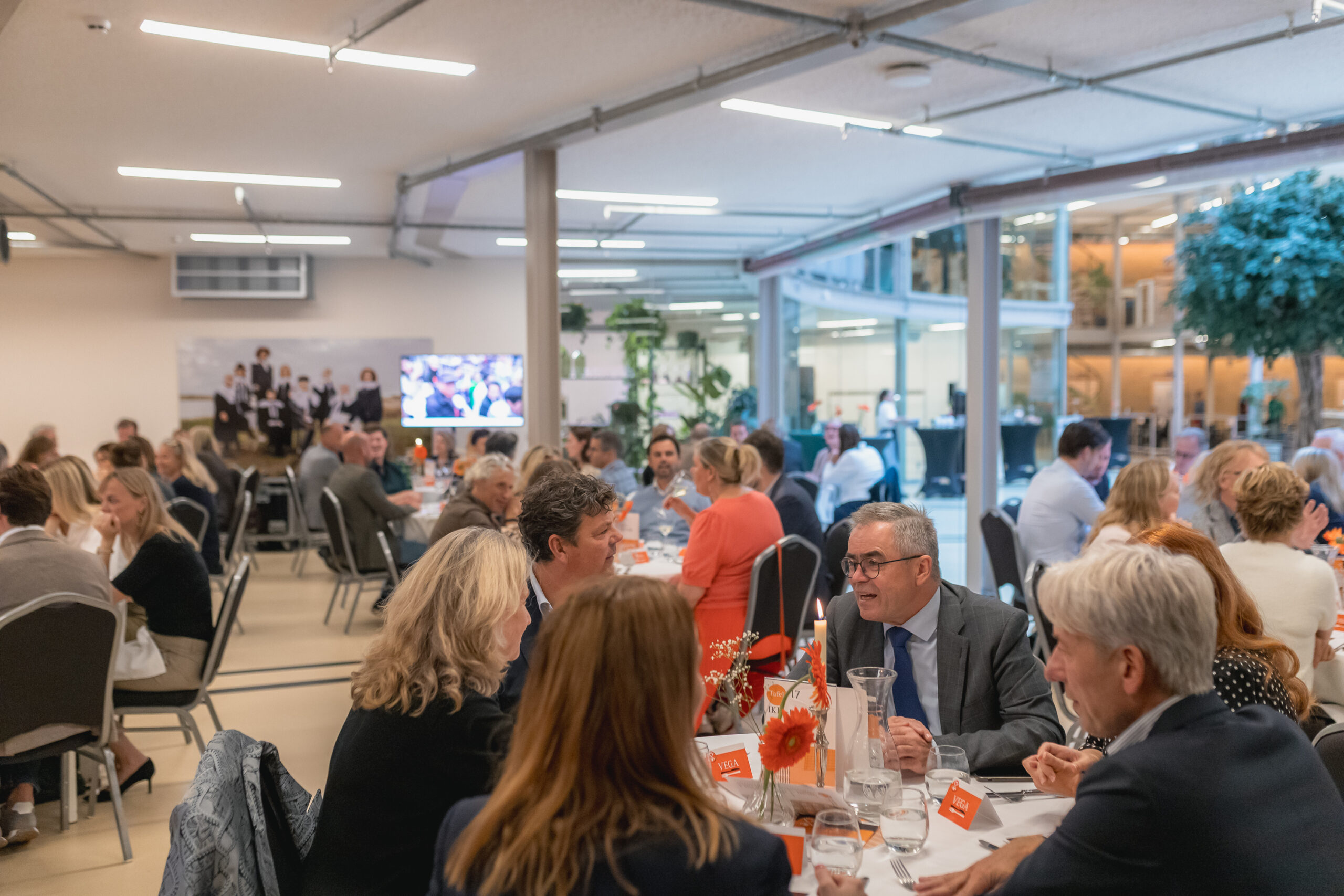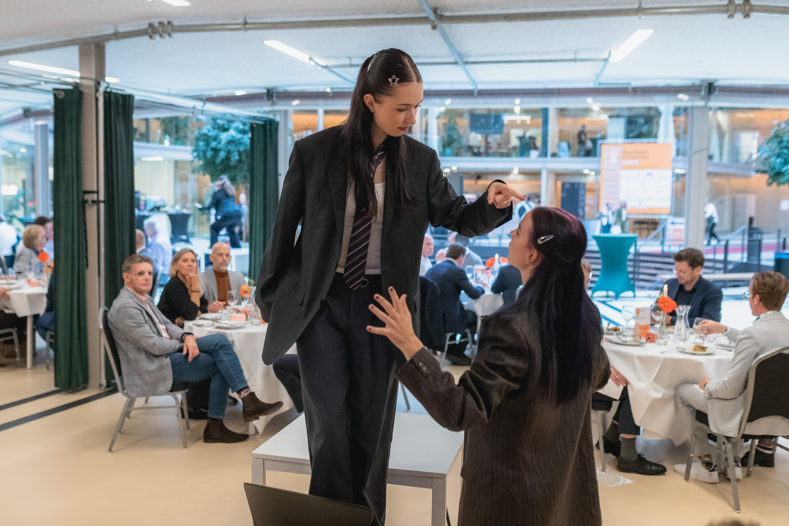 Om de netwerkservice van ons evenement te versterken hebben we in 2025 een speeddating geprogrammeerd. Bijna 50 gasten kwamen een uur eerder. Onder begeleiding van Lisa van Heusden zijn vier ronden van pakweg 10 minuten gehouden. Niemand kent iedereen al en niemand zal geen van de andere gasten kennen. Wij schatten het volgende rendement in: 50 deelnemers x gemiddeld 10 nieuwe contacten = totaal 500 nieuwe contacten via speeddating. Een blijvertje dus.