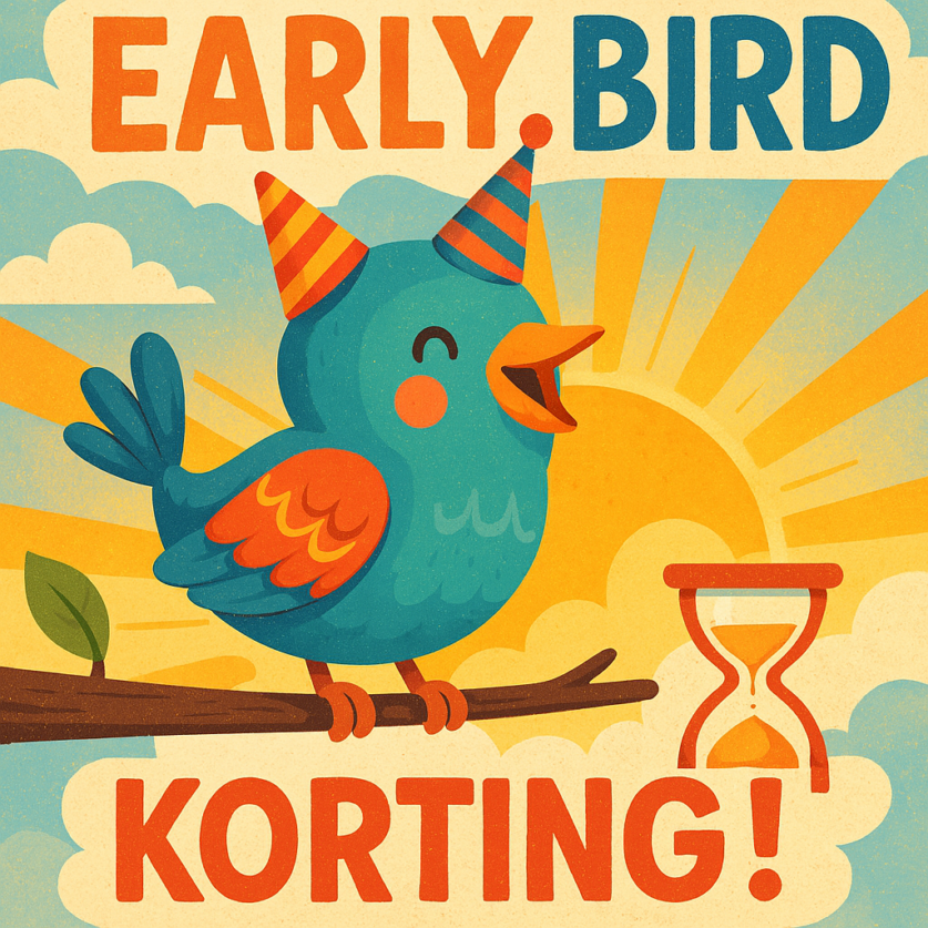 Vroege vogels zijn wakkere jongens en meisjes. Ze kennen de voordelen van vroeg op zijn. Voor de editie 2026 van ons evenement bieden wij early bird korting. Ons aanbod tot en met 31 december 2026: Individuele tickets: 150 euro in