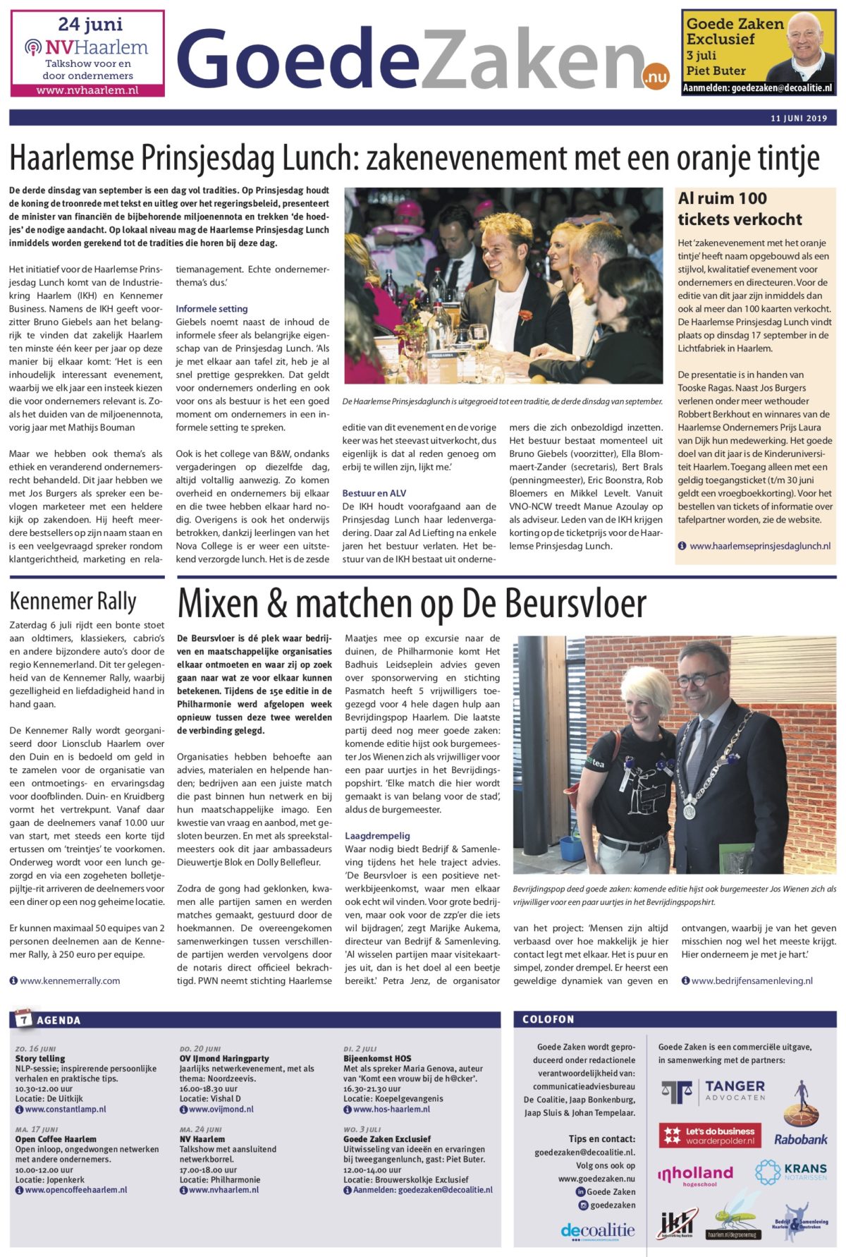 Haarlemse Prinsjesdag Lunch in Goede Zaken van 11 juni 2019. Klik op de afbeelding om het hele artikel te lezen. jun 11, 2019Melanie Breed